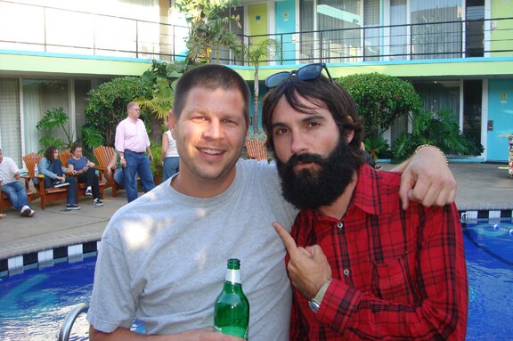 For reasons I'm not allowed to discuss, I'm not allowed to shave for a month. I hope I don't end up with a beard of bees like Justin Regan here. Justin works at Sole Tech. That's Barak with him on the left