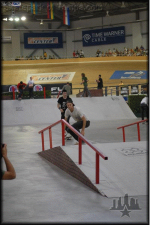 X-Games 2007 MenAndrew Reynolds - nollie noseblunt slide. I should have kept the shutter firing so you could see all of Chris Cole's back noseblunt right behind him