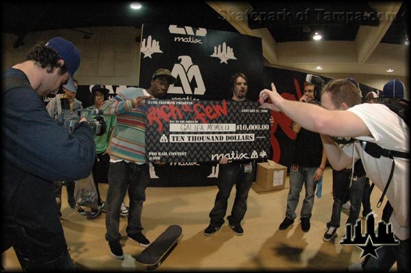 ASR January 2006 Gailea Momolu got ten grand for that nollie big spin back lip on the rail. Gailea, sorry for spelling your name wrong on the check