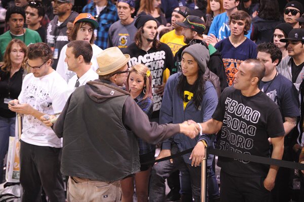 ASR January 2010 Mini-Ramp Jam Presented by Volcom I wonder what Jake Phelps is saying to Steve Rodriguez from 5Boro.
