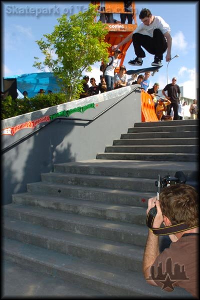 Right from the start, tricks were getting stuck. Greg Lutzka made this frontside flip in just a few tries