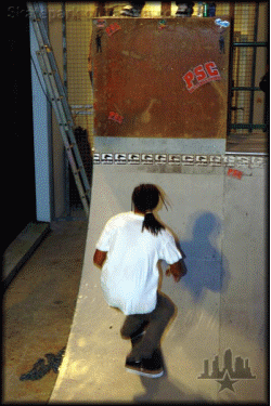 Terell Robinson needs some work on his tranny skills, but he still managed to pull of this wall plant fakie. Extra ugly trick but highly entertaining for all of us while Terell executed it with a smile on his face the whole time