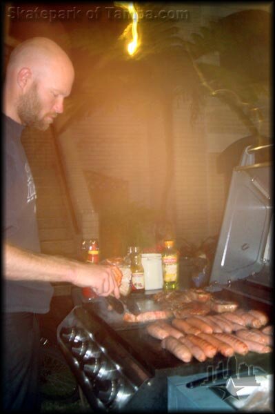 After skating, we went to a BBQ at P-Stone and Rhino's place where Matt Mumford cooked up some lamb chops, chicken, and all kinds of vegetables