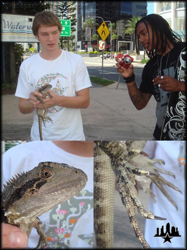 I heard stories about how there are these huge lizards everywhere right in the mix of the city streets. Sierra Fellers and Terell Robinson actually caught one. This apparently is a small one