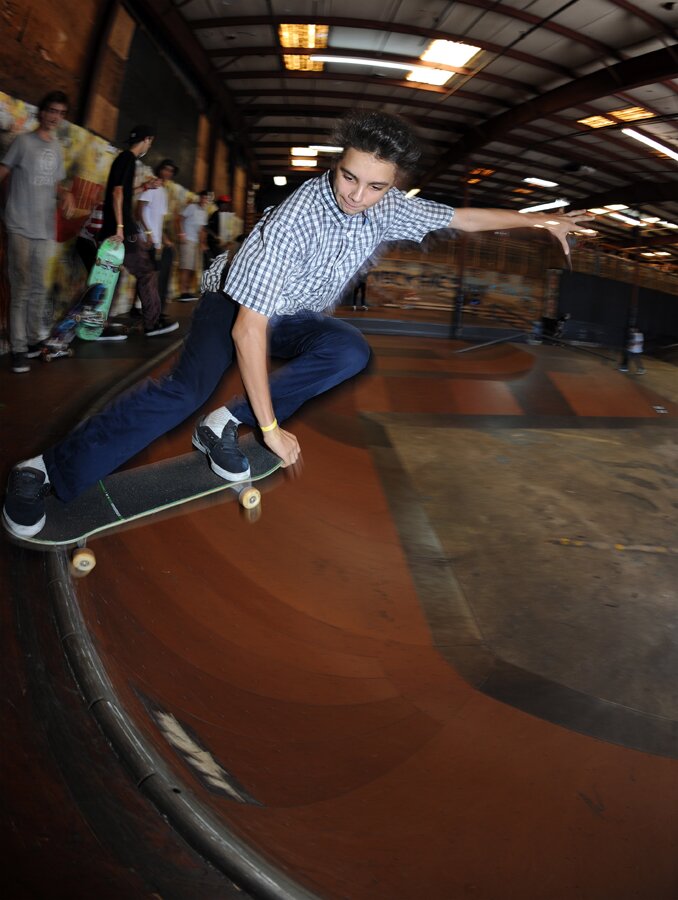 SPoT team rider Alejandro Burnell slashed frontside crailslides through the corner pocket and bashed off the walls into second place in the sponsored finals. Congrats buddy, you killed it.