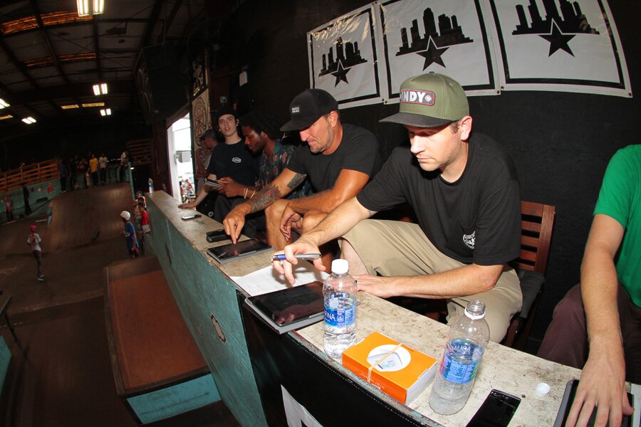 In skateboarding we don’t judge you by any discrimination, but if you join in our contests, these guys over here decide your fate.