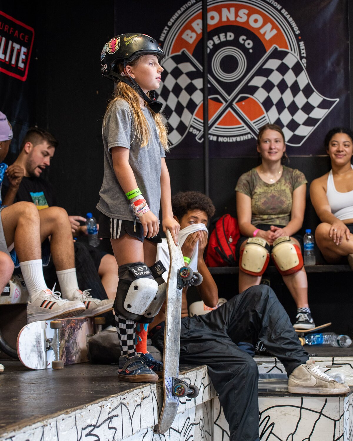 Her birth name is Juliet but the crowd knows her as JuJu. JuJu eyeing up the park before dropping in.