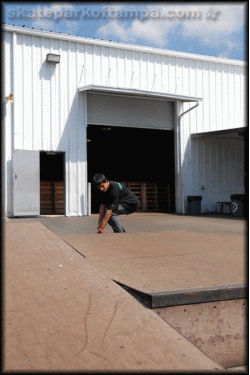 Brandon Baker took a break from working the Shop to throw down some pizza and flip in shuvs out
