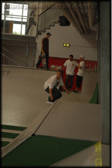 Neal Hendrix and Schaefer were just next to me talking about the Vert Contest format and how we should run it. As a joke, I suggested they consult Brandon Biebel on that. Neal's reply was, "Well he seems like kind of a jock so he'd probably be hyped on vert." Ha! Per Schaefer's orders, I'm not allowed to make vert jokes anymore, but he didn't say I can't repeat what the vert skaters say to me. Thanks for the laugh, Neal. I bet Biebel could do this long nosegrind on vert