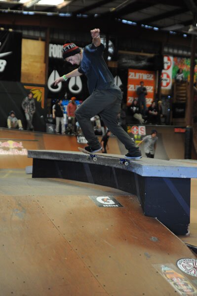 Brodie Penrod was one of the few hitting the difficult ledge. He was backside flipping out of these back tails around it.