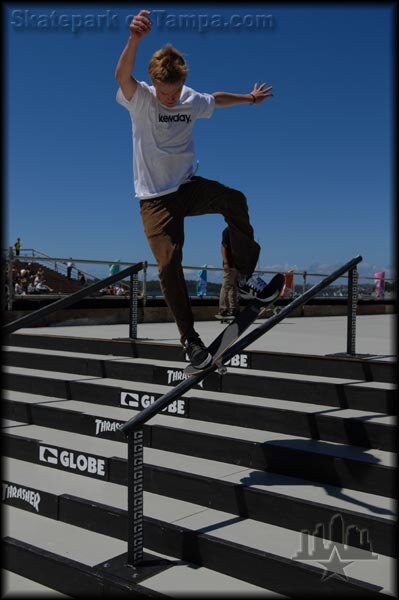 Slaughter at the Opera 2008 Chad Bartie has a king sized rat tail you can't see here on this frontside nosegrind on the 7
