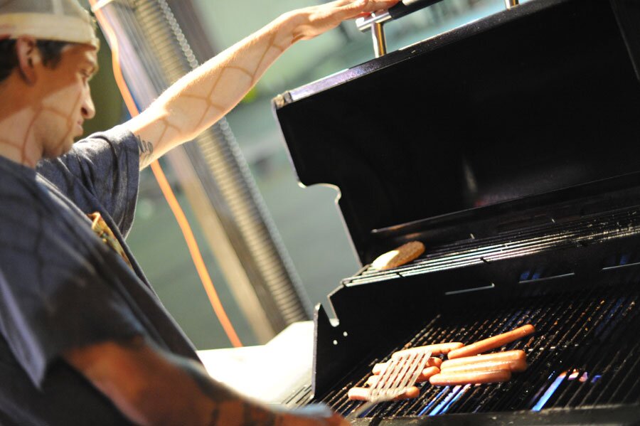 The night before, Casey sweated out at the grill feeding us all.