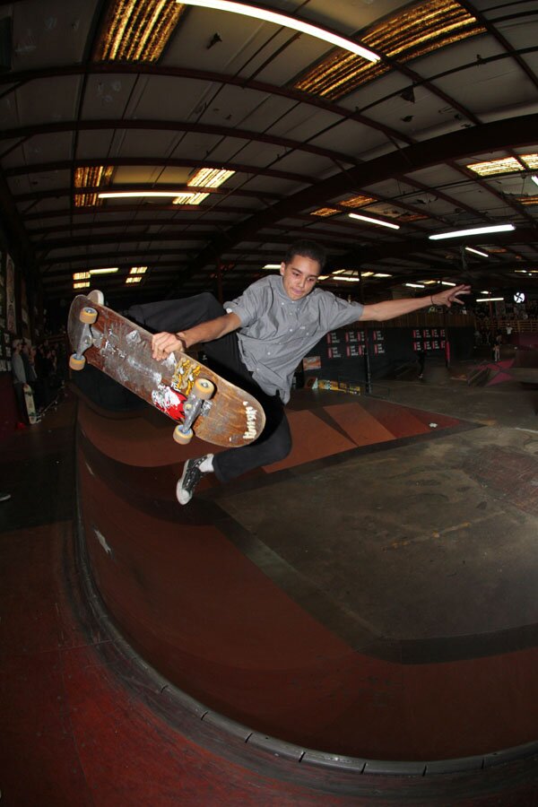 SPoT made it all the way to the final two and had to skate four jams to get there. Alejandro did this Boneless over the corner every single try.