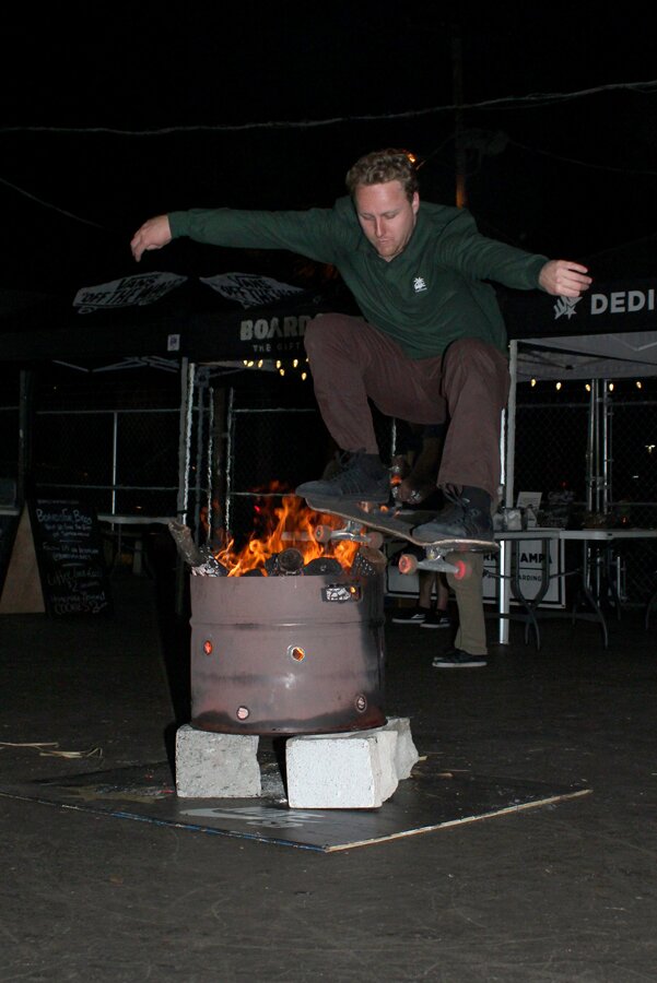 Derick closed out the night in typical fashion; with an ollie over the Fire Pit. See you guys in the morning for the real contest!