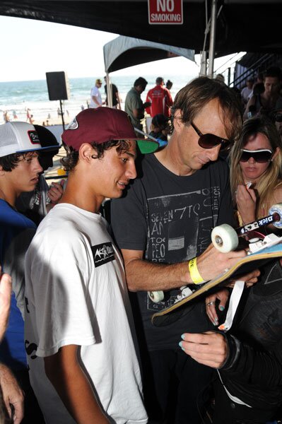 The Coastal Carnage winner is fanning out on the Best Trick winner by asking for an autograph on his board.