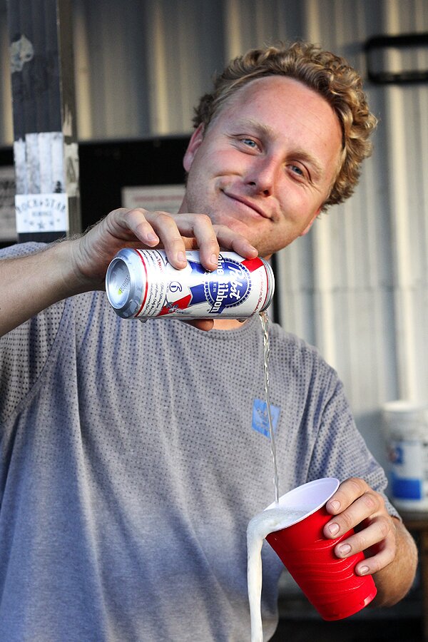 Derick was enjoying a cold one as well, even if most of it ended up on the ground...