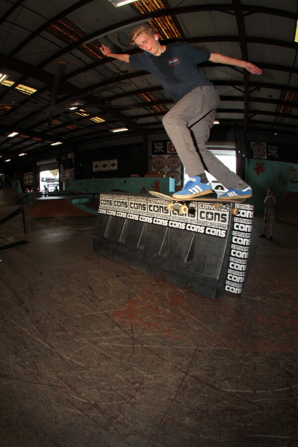 We took a vote and the people decided they wanted to grind the barrier too. So we held another best trick with the barrier sideways. Tyler Wolford BS Tailslide Shuv.