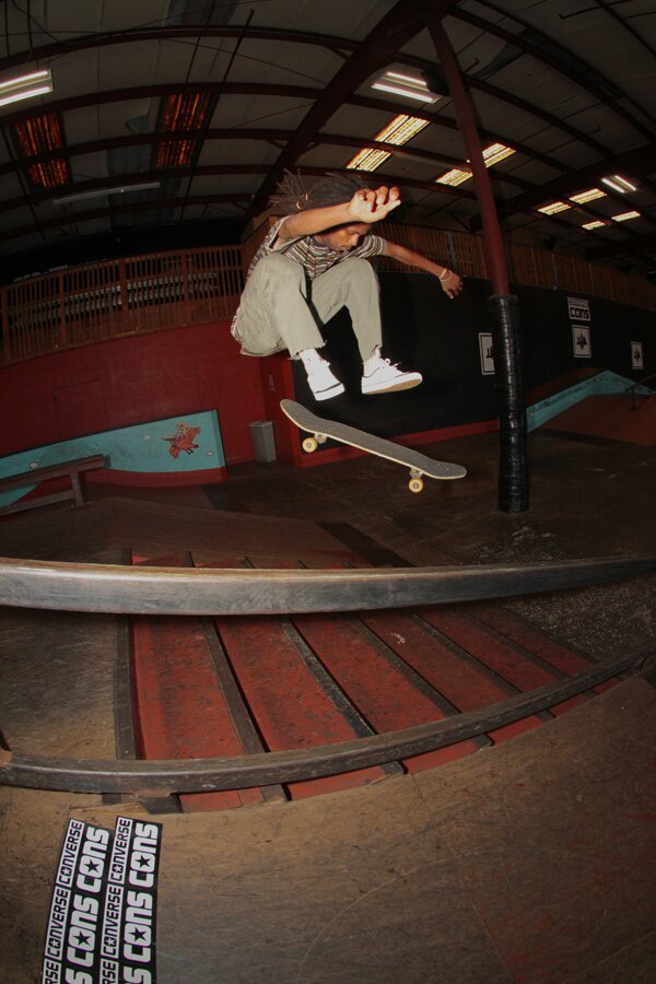 Derick Wynn - FS Shuv down the stairs. Derick is on our SPoT/Converse Flow Team and was ripping all day in those new spicy sneaks.