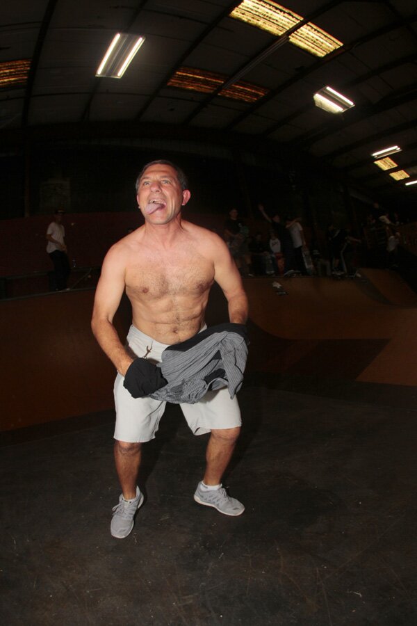 Someone threw up on the course mid run. This dad ran out and cleaned it up with his shirt..! Im guessing that face is because of the smell or maybe excitement.