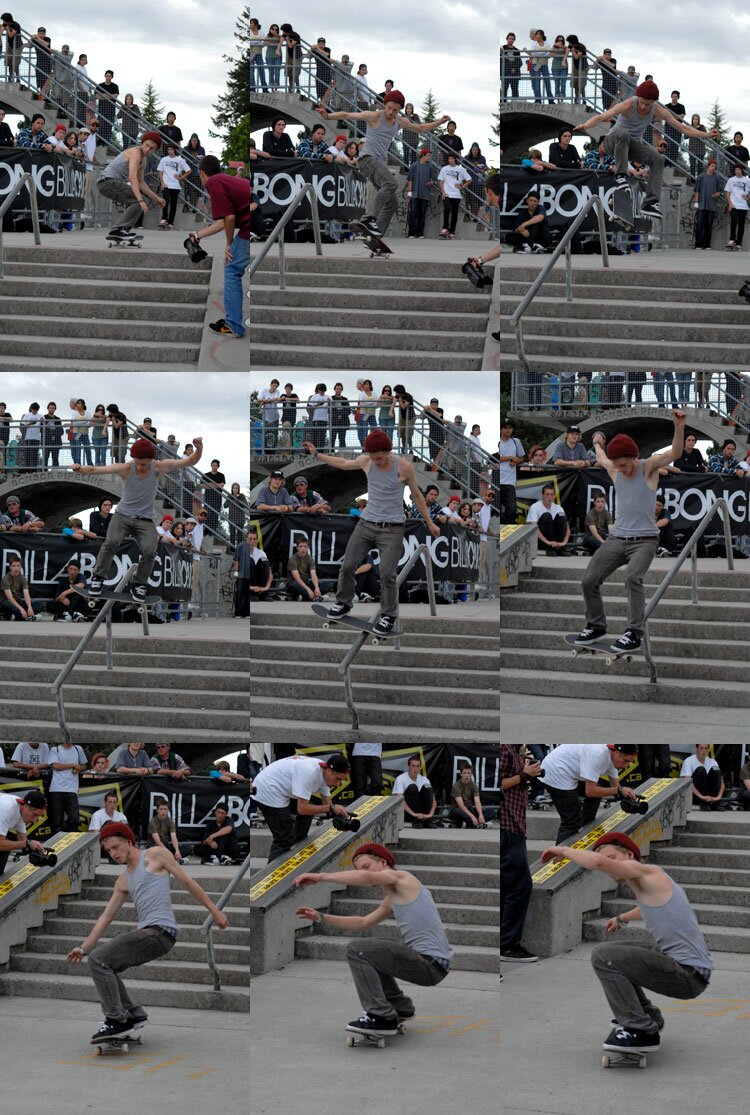 Damn Am Canada 2009 After Dallas Ives did this switch big spin boardslide, he switch 360 flipped the rail and won Best Trick