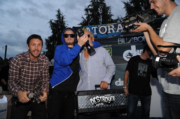 Dallas also won the Zumiez Destroyer Award. We made samurai Engrish pose with it for a photo and he couldn't understand that it wasn't really his to take home.