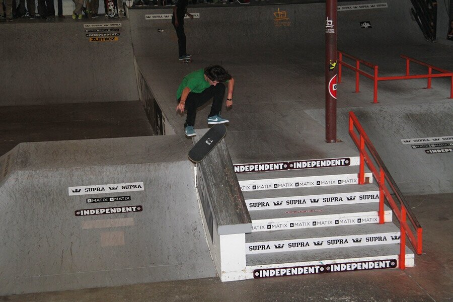 Jereme kickflipped over the hubba as well.