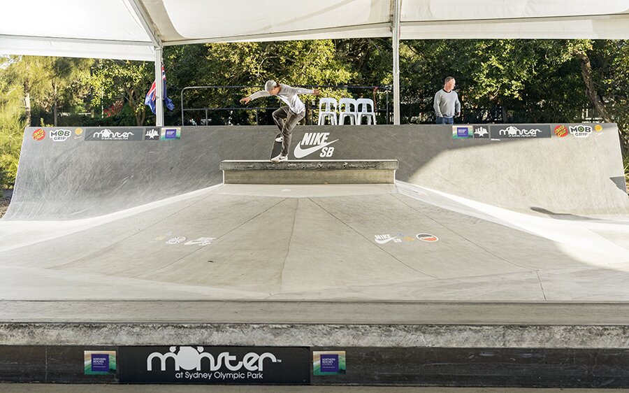 Did not catch this bloke's name. I’m sure he’s a star here in OZ and we should know it, so after research and goin’ deep into investigation I’m guessing its Rob Pace runnin this high speed Bluntslide; please let us know if we cracked the case!