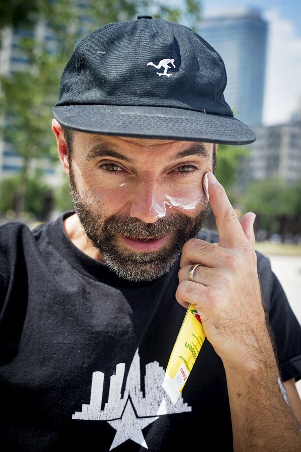 Before we hit it, Chi-town locals Spaz and G take advantage of the new ping-pong table at Grant Skatepark.