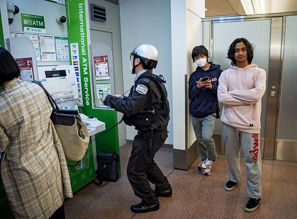 Sam keeps things exciting right of the bat and jams his passport into the atm machine.