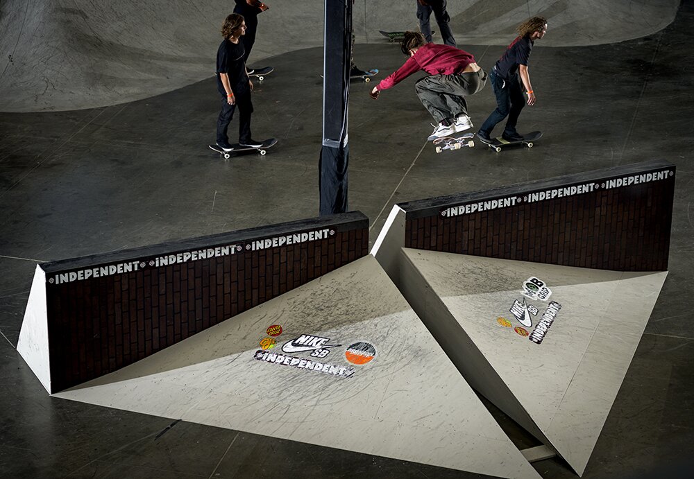 Independent Best Trick Contest was on this new weird Pyramid/LA High Bank thing. Tyson Petersen got it started with a Kickflip into the Bank and peaced out.