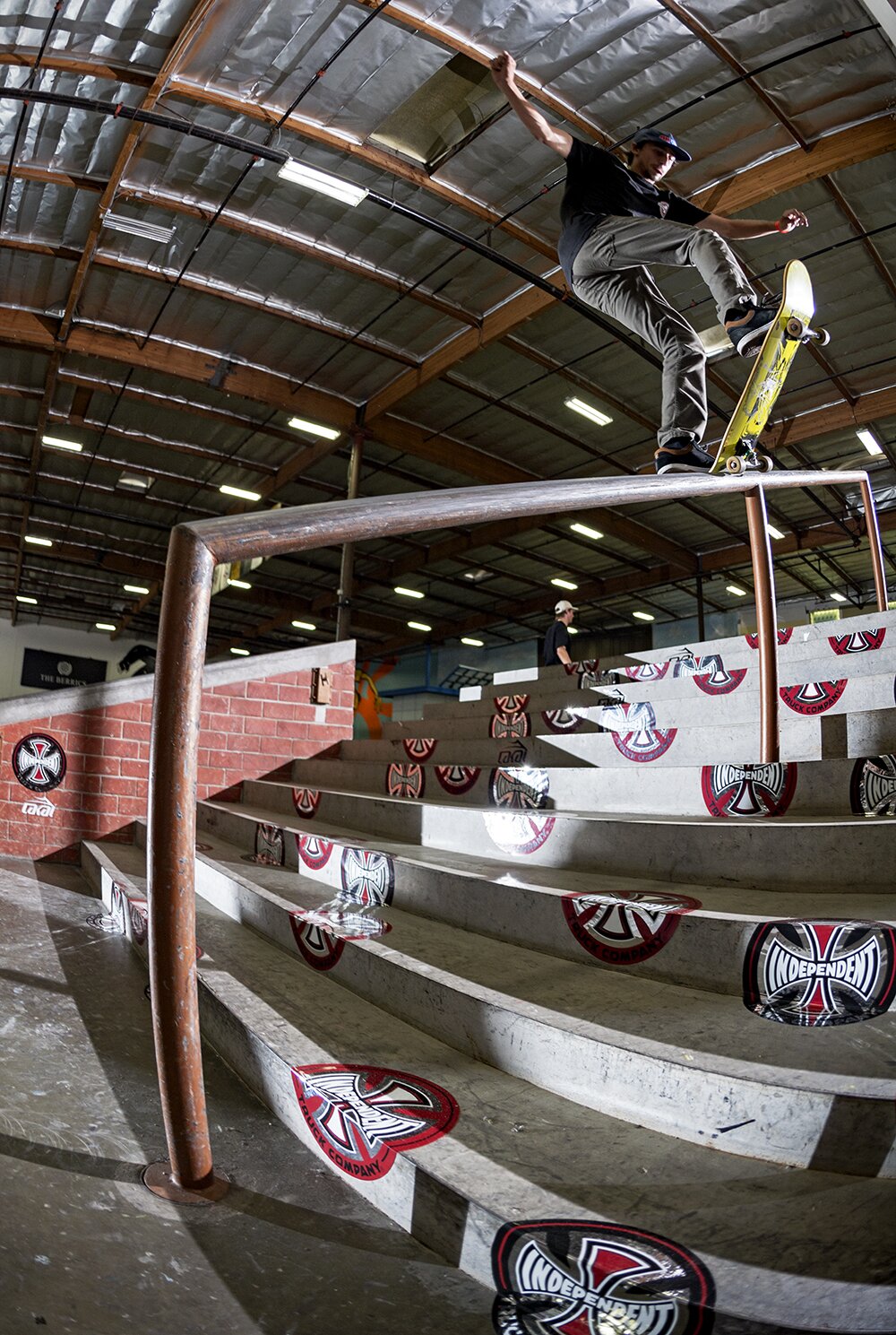 Down the I-5 straight from San Jose and onto the big rail, Chris Corpuz does the FS blunt thang as well.