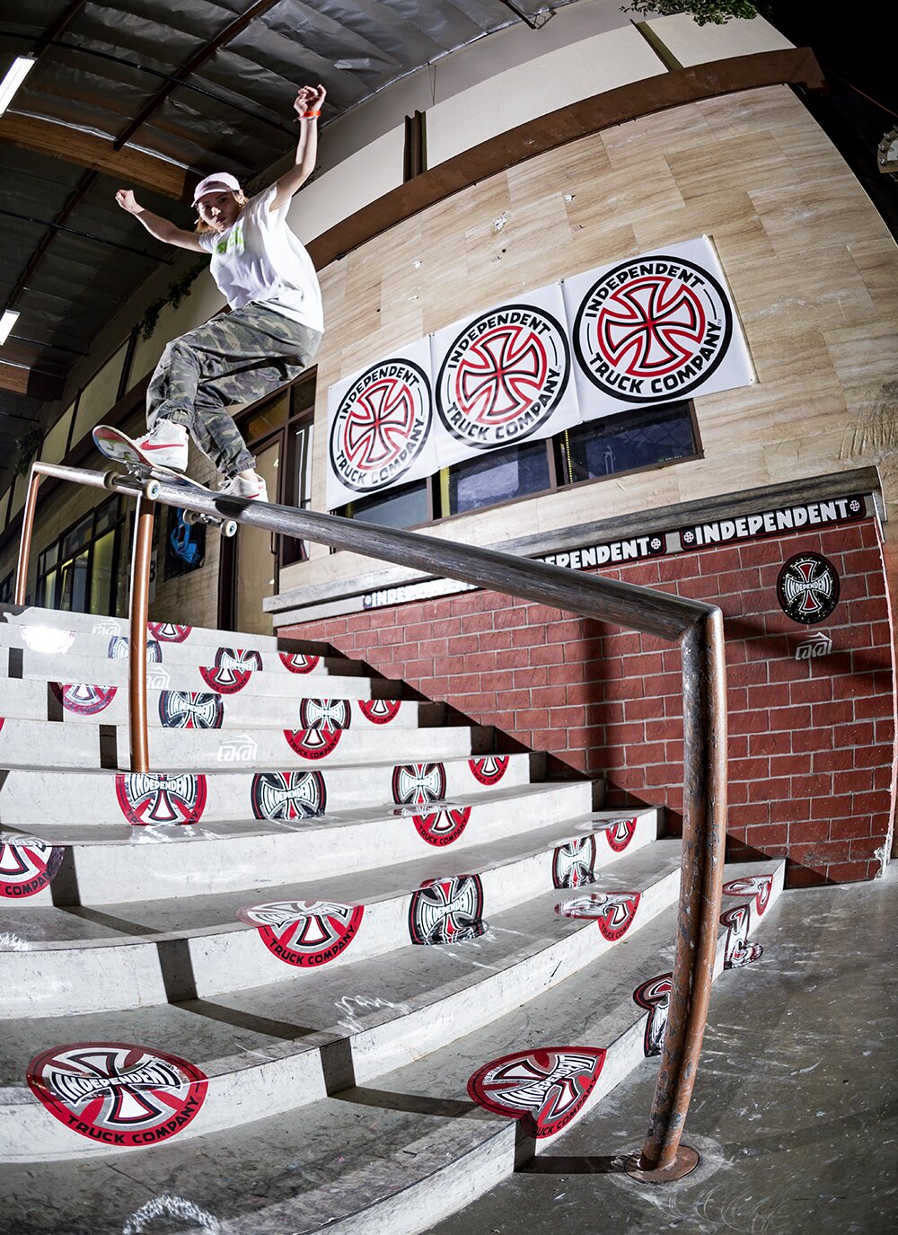 Kotone Nishimura works her way up and finds herself FS Boardsliding the 10 stair rail in no time!