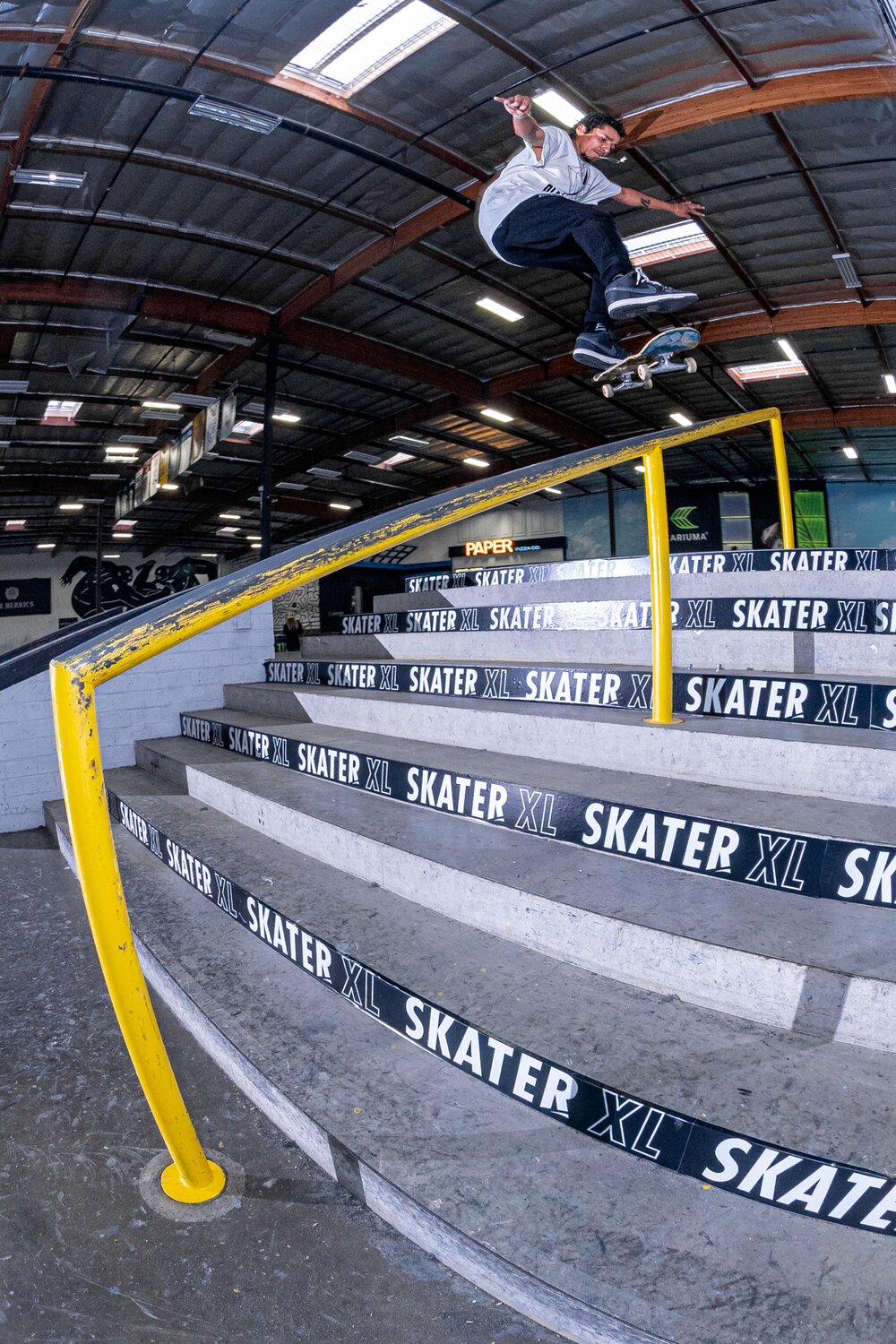 Always good to see LA local Maurice back in the mix. He's been skating these contests for a minute. Classic kickflip frontboard warm up for the camera