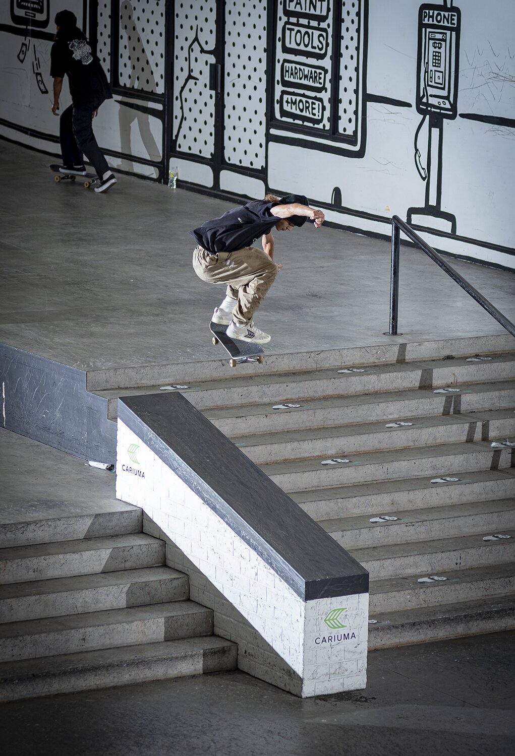 Cass Hecht gets the Scandal Best Trick Contest started with a Kickflip Grind.