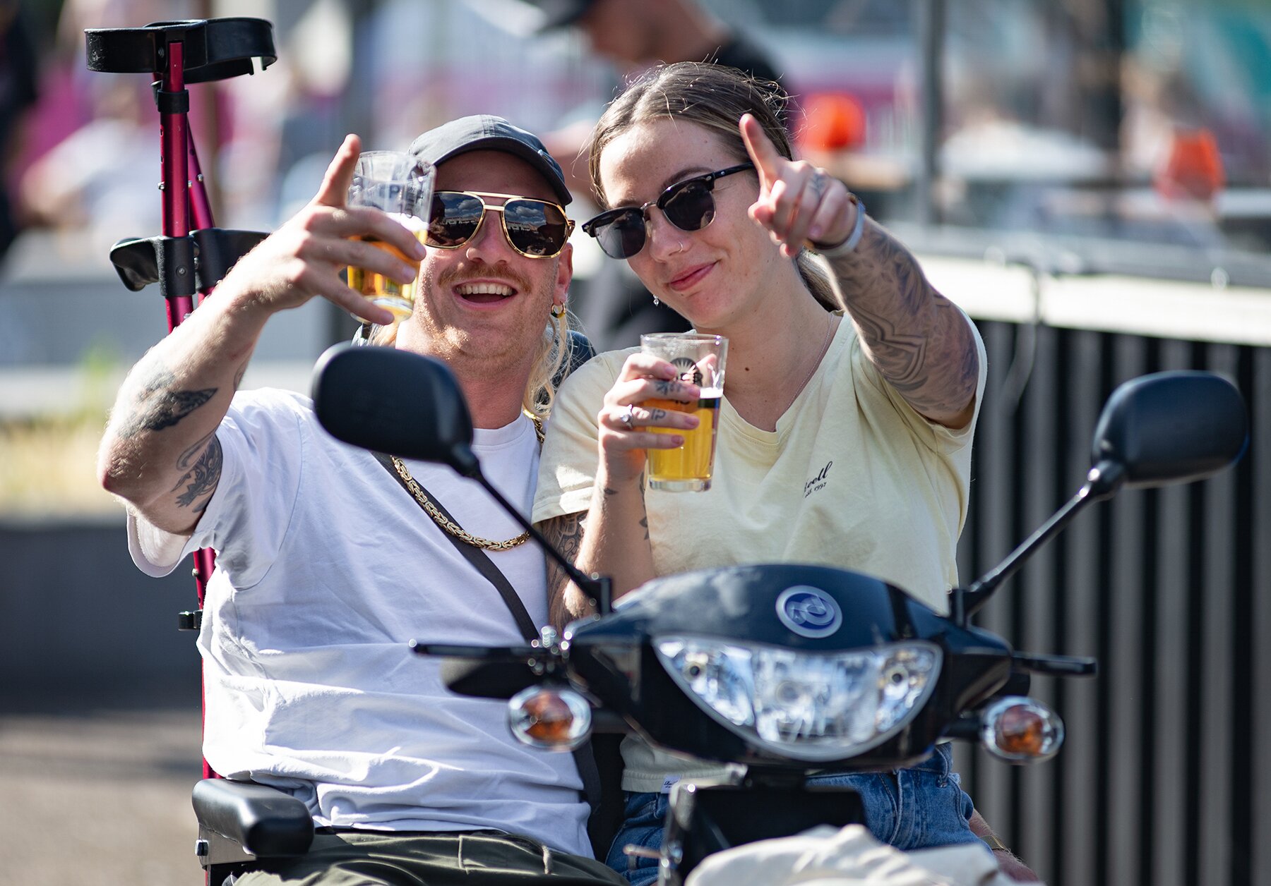 We #1! Woody being the nice guy he is, lends a ride on his cart to his lady friend.