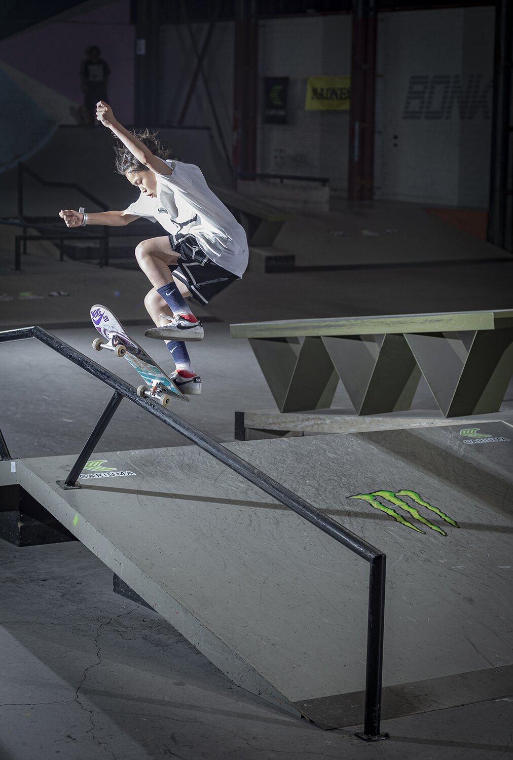 The Kickflip catch before bashing it down into Fs Blunt and Bigspin Flipping out.