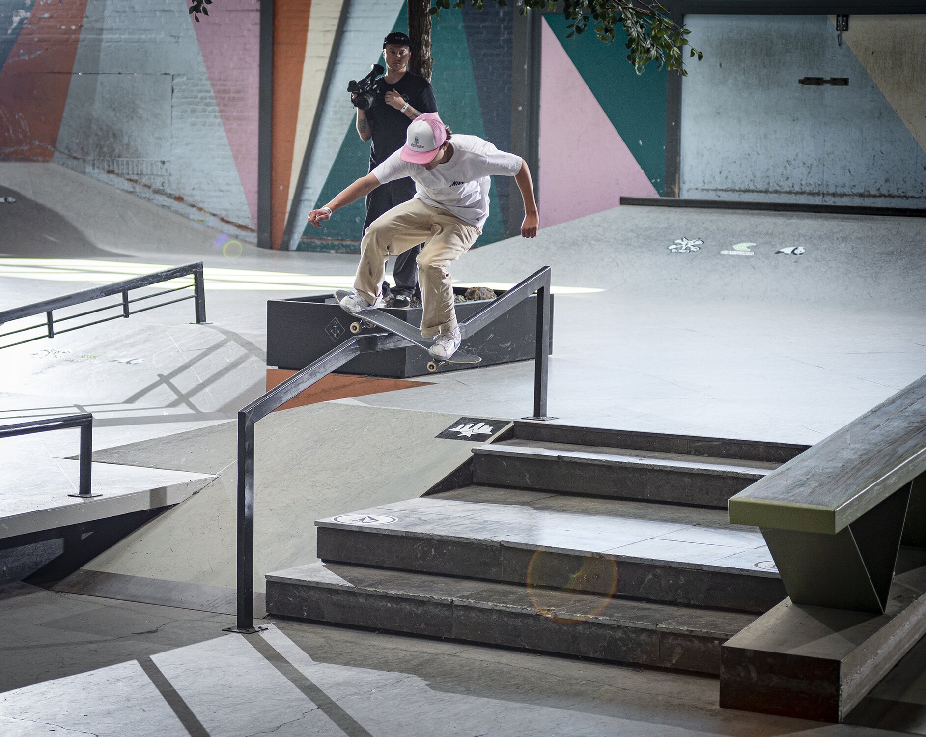 Diego Broest Boardslides what seems to be the scariest obstacle on the course, not a lot of peeps hittin’ it. What’s with that filmer in the back missing the clip?! He’s prob gonna get fired; def. never taking my job.. that’s for sure!