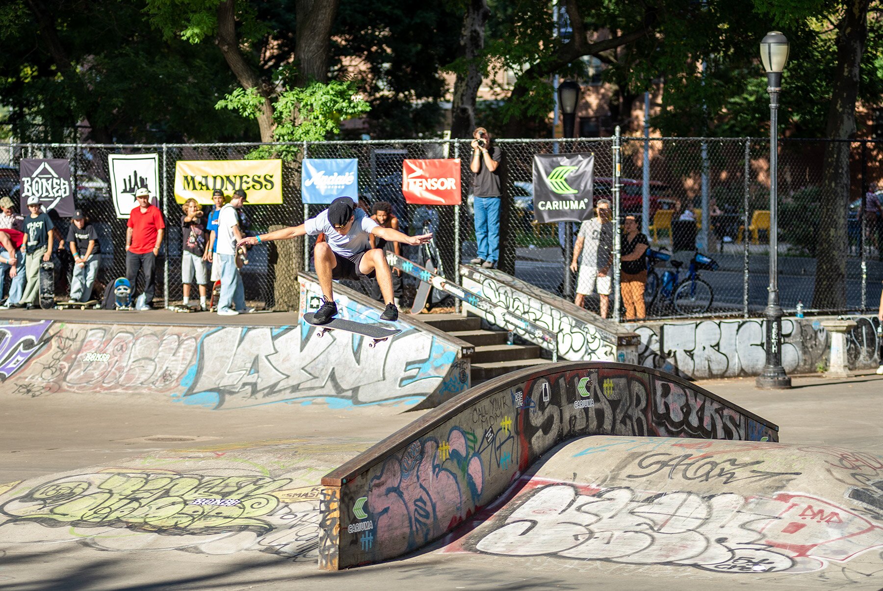 Who wears short shorts?! Tyler Kirshenbaum does. Also, does well caught F/S Flips as well.