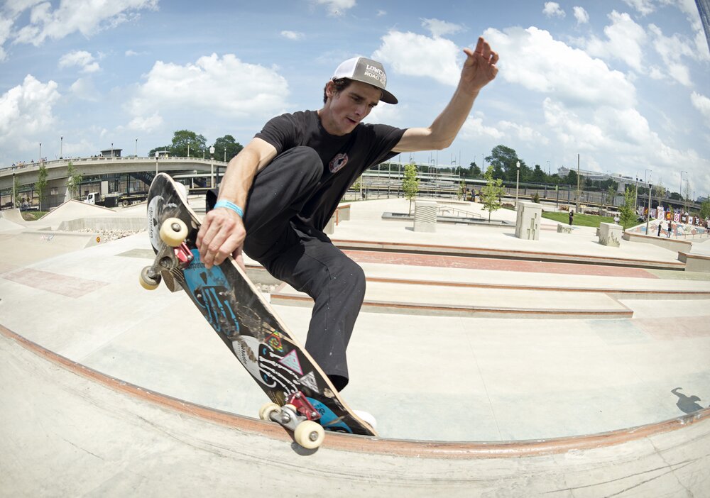 Sponsors: Element (flow), HUF (flow), Bronson Speed Co., OJ Wheels, Modern skatepark