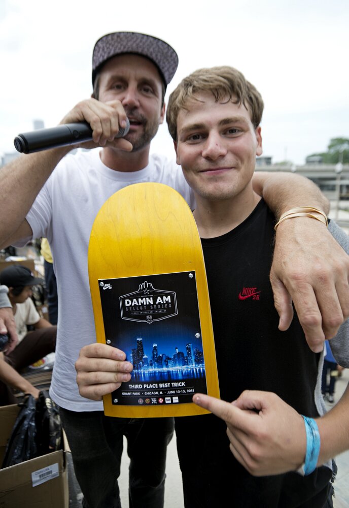 Yoshi Tanenbaum Backside Three Flipped aka the Blizzard Flip down the set via best trick contest causing him to obtain the 3rd place spot in that category.