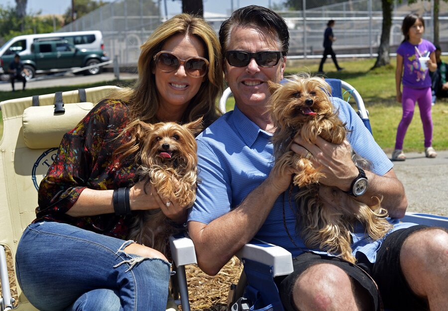 Mr. & Mrs. Loy with their dogs Oliver and Elvis that strangely resemble Ethan n’ David.