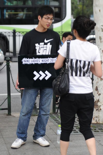 Outside we got dudes recruiting for some kind of ladies' event next door.
