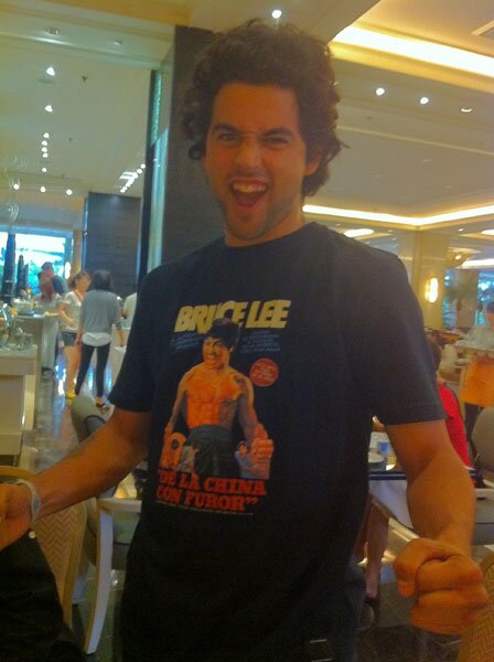 P-Rod is ready for this weekend with an assortment of kung fu shirts. When you wear these and you're in China, your lips don't ever match the words you're saying.