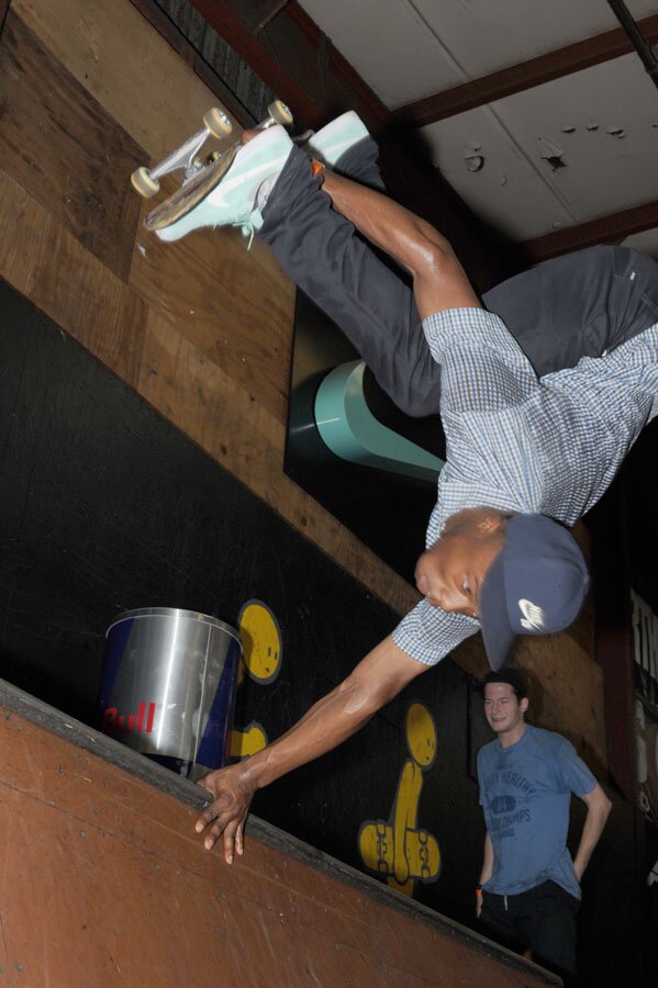 Man it must be awesome being able to do Andrects and not even know what they are. I asked Dashawn if he knows what this trick is called and he said, "like early grab melon or something?" Ha, nice. Dave Andrect was a pro before our time who invented this style of invert where you grab behind your front foot with your front arm.