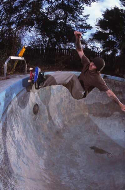 Allen Russell: If I ever do anything right again it will be to not mess up a photo of Allen Russell. I cut his hand off in this photo and for this he has ended our friendship of 10 years. Oh wow, look at that random parrot sitting there, fs grind.