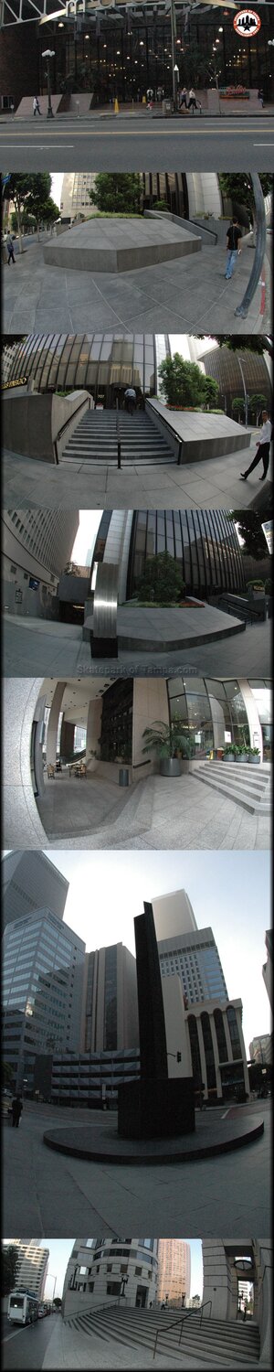 This is just a small sample of the skate spots within a block of my hotel in dowtown Los Angeles. Who says banks shouldn't be in the DC Skate Plaza? They're everywhere here and they're all either marble or brick that's not too rough at all, and of course, stair sets everywhere
