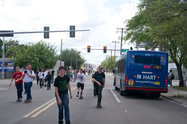 Go Skateboarding Day and Emerica's Wild in the Streets Ed Templeton in the pack on 7th Avenue.