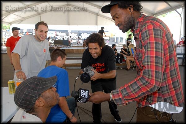Rodney Johnson from Billabong did the interviews for the live webcast during intermissions. That's Vern Laird from Listen filming and Emeric Pratt getting interviewed