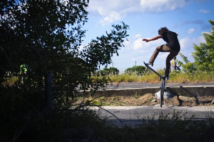 We headed over to a DIY spot where we met up with Mat Call. Davin busted out a front blunt down the rail before Mat showed up.