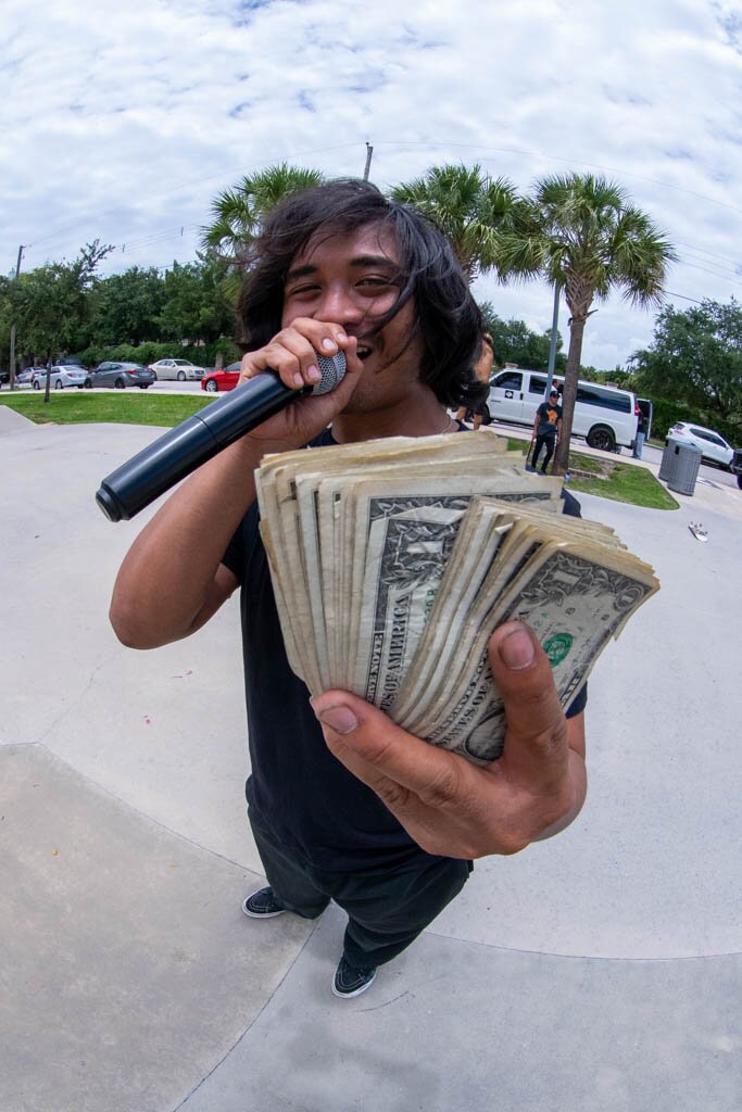 Sam flaunting some of the cash purse that was kindly provided by Red Bull and Westside Skateshop.